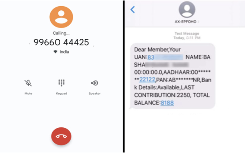 So you will have to give a missed call on this number – 9966044425. So when you give a missed call on this number issued by EPFO you will receive an SMS just within a few minutes. This SMS will have the information regarding the balance in your provident fund account. In the image below you can see the detailed format of the SMS. So make sure that you check this image out carefully.